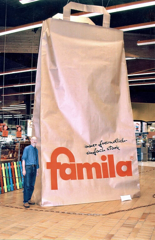 Die Rieseneinkaufstüte für die Verkaufsförderung im Indoorbereich, die Riesentabaktüte für einen gelungenen Messeauftritt, der Butterblock als garantierter Eyecatcher, der Riesencomputer als Aktionsangebot oder ein Sofa in Firmenlogoform. Wir geben Ihrer Phantasie die richtige Form.